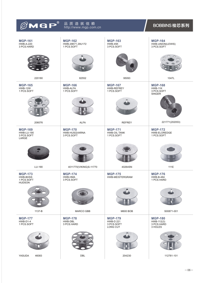 寧波市宏威機械制造有限公司2023-08-08寧波市宏威機械制造有限公司 MGP品牌成立于1990年,總部位于浙江寧波。企業(yè)分為浙江寧波、浙江紹興、河北、三大生產(chǎn)基地。全產(chǎn)業(yè)鏈自主生產(chǎn)的全產(chǎn)業(yè)鏈。是國內較大的梭芯生產(chǎn)基地和縫紉機配件的企業(yè)之一。是我國縫配件梭芯、梭殼縫配件出口量較大企業(yè)。MGP品牌產(chǎn)品與各大整機公司配套,并銷售80多個地區(qū),深受客戶信賴。